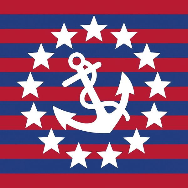 Designed by Marion Smith in 2025, the USMF flag and logo are inspired by the original designs of America's first two naval flags (Rhode Island and South Carolina) from 1775 and incorporates elements of the Congressionally authorized (1848) yacht ensign popular among civilian vessels in the United States throughout the 20th century.
